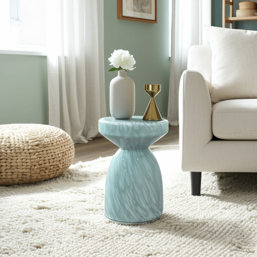 Room Decor Side Table, End Table, or Night Stand - Aesthetic Glass Accent Table with Artistic Patterned Body for Office, Living Room, or Bedroom - Endless Style for Big or Small Spaces - 20" Blue